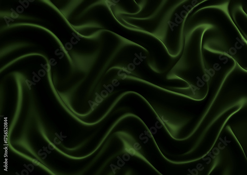 © Julia, Obraz premium Luxury elegant background. Wave line crumpled swirl.Dark soft kelly warm green avocado hue silvery pale dusty silk satin fabric material. Abstract brilliant smooth rich royal velvet wallpaper.Fashion