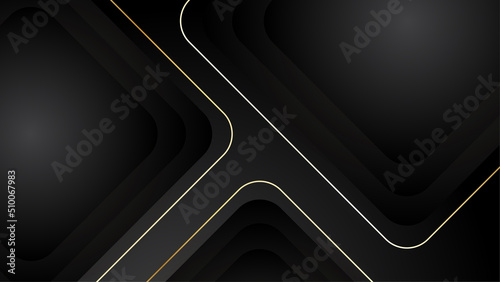 © Roisa, Obraz premium Luxury elegant black background with golden lines and waves
