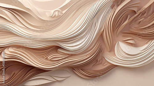 © ksu_ok, Obraz premium Luxury Elegant white overlaps a brown tint background with a line. Realistic paper cut style 3d, generative AI tools