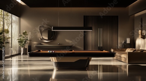 © Nurul, Fototapeta premium Luxury game room pool table interior design