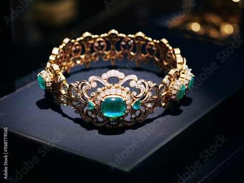 Obraz premium Luxury gold bracelet with turquoise gemstones, elegant jewelry design,...
