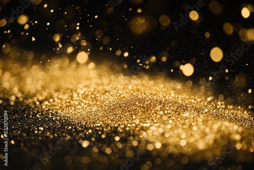 Naklejka premium Luxury gold dust particles shimmering against a black background creates a...