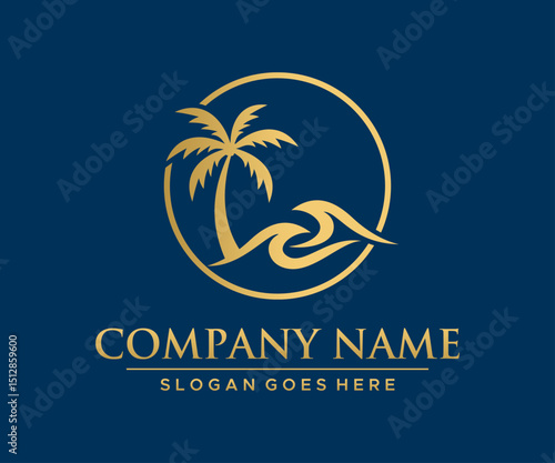 © Syibil, Naklejka premium luxury gold palm tree and waves logo