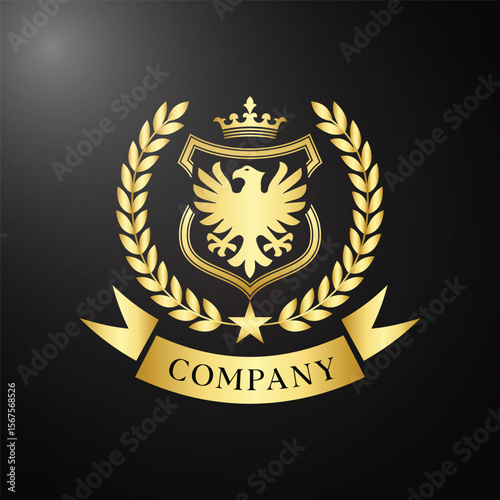Obraz premium Luxury Golden Eagle Crest Logo with Crown and Laurel on Black Shield Background