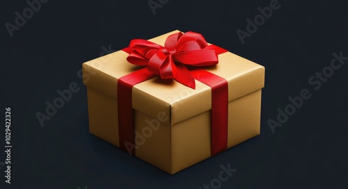 Obraz premium Luxury Golden Gift Box with Elegant Bow and Ribbon on Dark Background