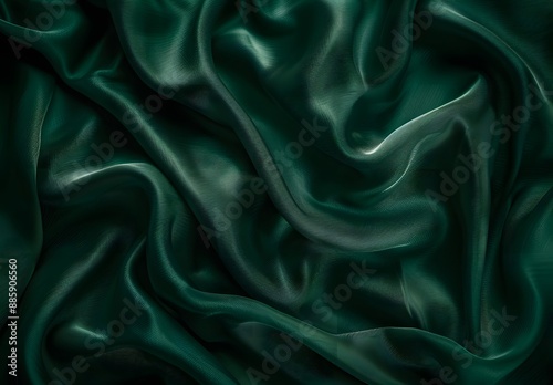 Fototapeta premium Luxury Green Silk Fabric Texture Close Up