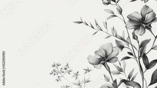 © Chaikit, Fototapeta premium luxury hand-drawn botanical elements, delicate floral motifs, minimalist nature sketches, elegant pencil artwork, subtle gray shading, refined botanical collection, high-quality line drawing,
