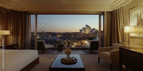 © Murda, Fototapeta premium Luxury hotel room overlooking Sydney Opera House.