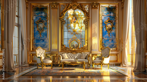 Fototapeta premium Luxury House Golden Interior, world architecture day, first Monday of...