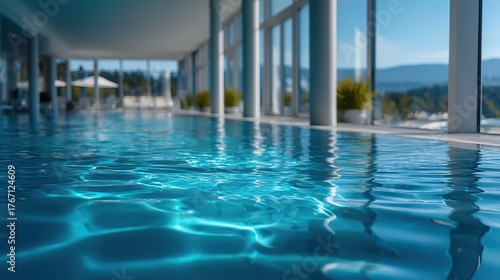 © Phichaphat, Fototapeta premium Luxury Indoor Pool Stock Photo - Relaxation, Spa, Wellness, Swimming pool