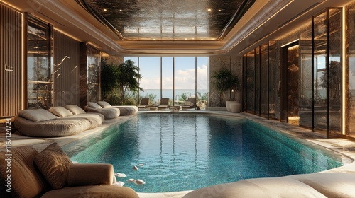 © Aulia, Obraz premium Luxury Indoor Pool with Ocean View: A Tranquil Escape
