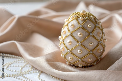 © Nelly, Fototapeta premium Luxury-inspired Easter egg adorned with fine pearls and intricate beading for an elegant touch.