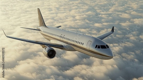 © Lemdah, Fototapeta premium Luxury jet soaring above clouds
