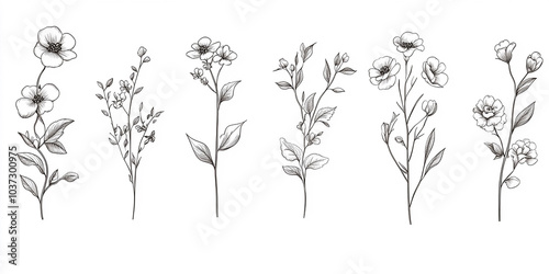 Fototapeta premium luxury line floral collection features various flowers and brunch, perfect...