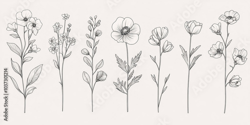 Fototapeta premium luxury line floral collection features various flowers and brunch, perfect...
