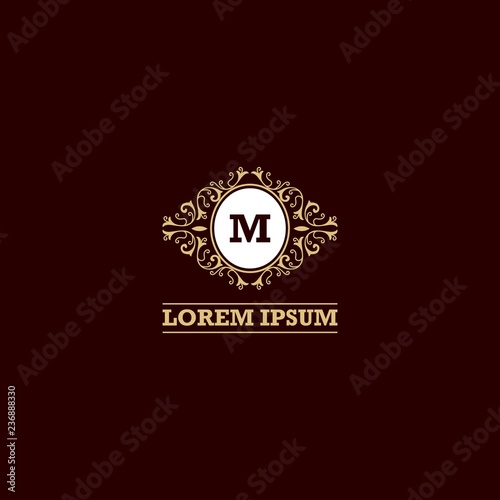 © MIRACEL, Fototapeta premium Luxury logo template vector golden vintage flourishes ornament. logo design inspiration