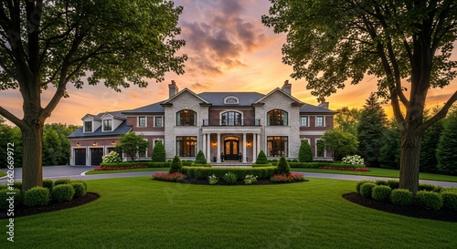 © creativeideh, Obraz premium Luxury Mansion at Sunset