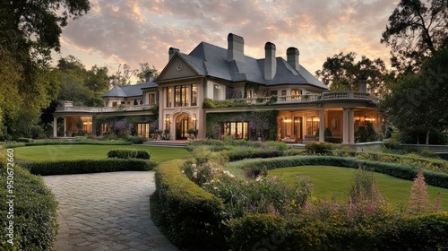 © almeera, Obraz premium Luxury Mansion with a Stone Pathway