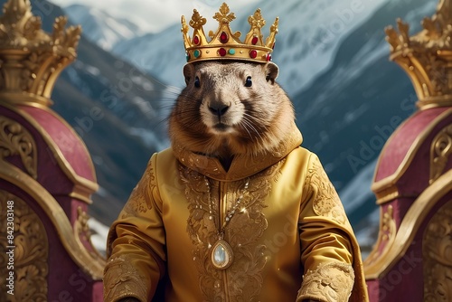 Obraz premium Luxury Marmot wearing crown and golden clothes