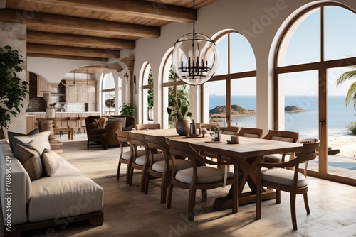 Fototapeta premium Luxury Mediterranean Dining Room With Amazing Sea View
