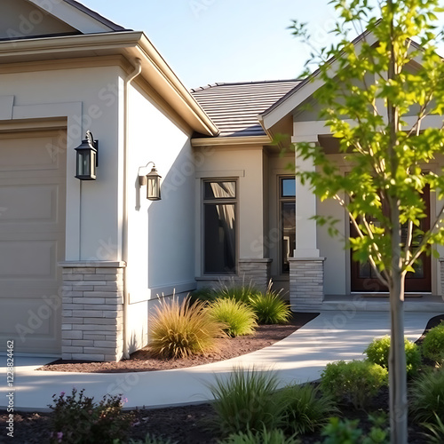 © MatandSterre, Obraz premium Luxury Modern Home Exterior: Stunning Contemporary Architecture and Landscaping Design