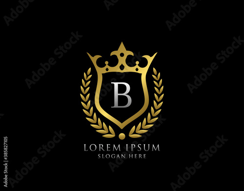 Fototapeta premium Luxury Monogram B Letter Logo. Classic Gold King Crown badge design for Royalty, Letter Stamp, Boutique, Hotel, Heraldic, Jewelry, Wedding.