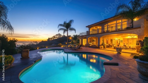 © Anak, Fototapeta premium Luxury Ocean View Estate at Sunset