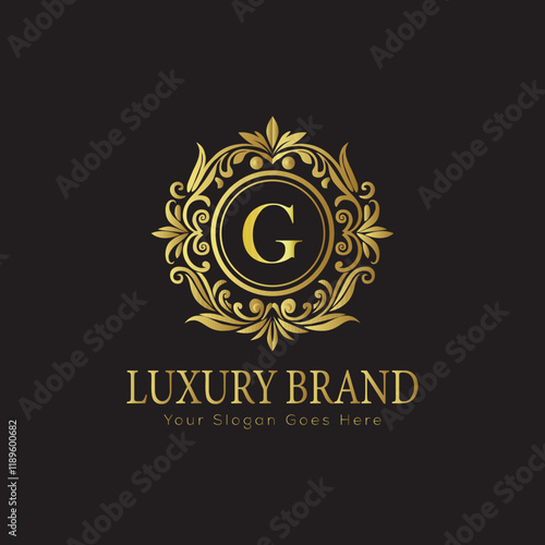 © ASRAF ALI, Naklejka premium Luxury Ornate Letter Logo with Floral Frame