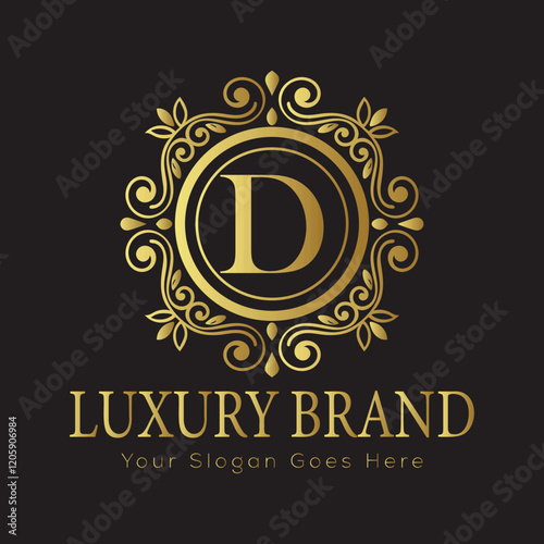 Fototapeta premium Luxury Ornate Letter Logo with Floral Frame and Dots