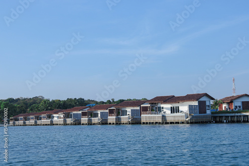 Fototapeta premium Luxury overwater bungalows tropical island resort vacation getaway