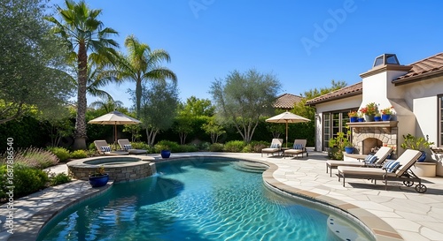 Fototapeta premium Luxury Poolside Backyard Oasis.
