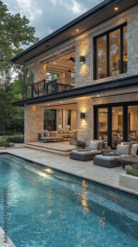 Fototapeta premium Luxury poolside retreat modern home residential outdoor relaxation