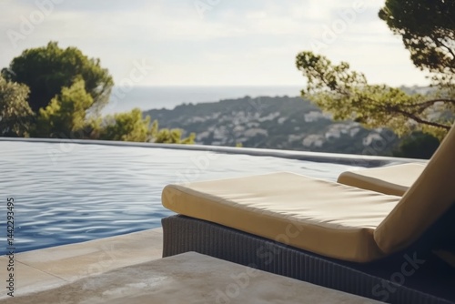 © Viktoriia, Obraz premium Luxury poolside retreat overlooking scenic hills and ocean views