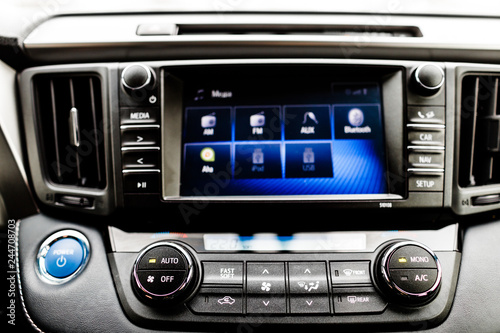 Fototapeta premium Luxury prestige car interior, dashboard, steering wheel.