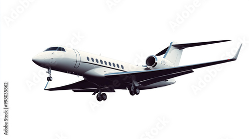© Sadia, Naklejka premium Luxury private jet in flight above clouds during the day with sleek white design showcasing elegance