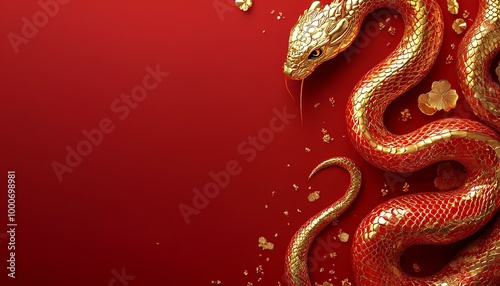 Obraz premium luxury red and gold chinese snake new year background with copy space for text, snake year