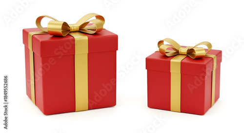 Obraz premium Luxury Red Gift Box with Gold Ribbon and Bow on White Background with Copy Space