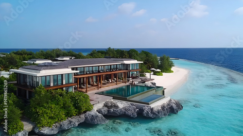© predator, Obraz premium Luxury Resort Overlooking Turquoise Water in Maldives
