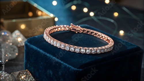 © Mutasim, Fototapeta premium Luxury Rose Gold Tennis Bracelet with Diamonds on Velvet Display