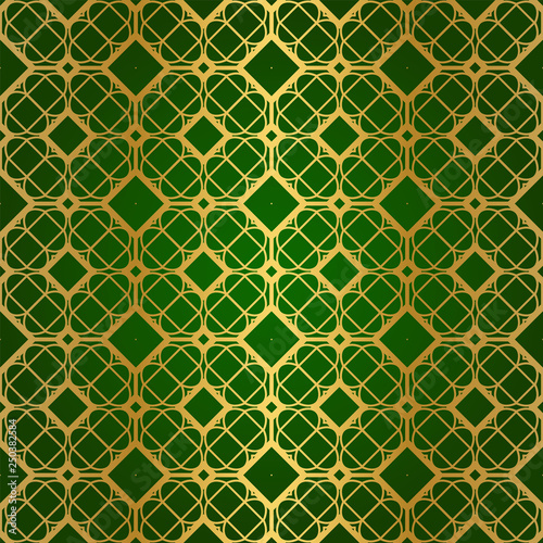 © Bonya Sharp Claw, Fototapeta premium Luxury Seamless Geometrical Linear Texture. Original Geometrical Puzzle. Backdrop. Vector illustration. Green gold color. Design For Prints, Textile, Decor, Fabric.