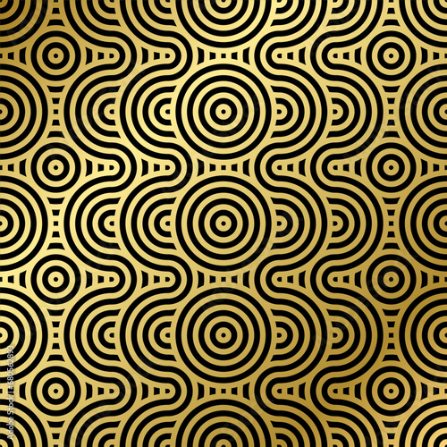 Fototapeta premium luxury seamless pattern black and gold wave circle