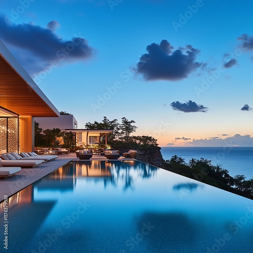 Fototapeta premium Luxury seaside resort with panoramic cliffside views, exclusive dining...