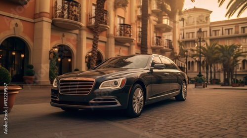 Naklejka premium Luxury Sedan Parked in Front of Elegant Building