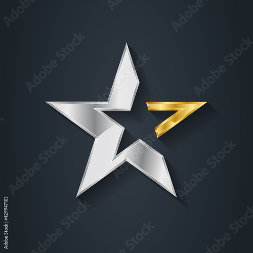 © Boris Znaev, Fototapeta premium Luxury silver star inlaid with a gold element. Original vector design element.
