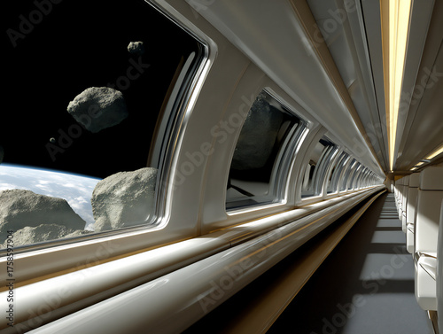 © Sung Hwan Kim, Fototapeta premium luxury space cruise liner in asteroid field