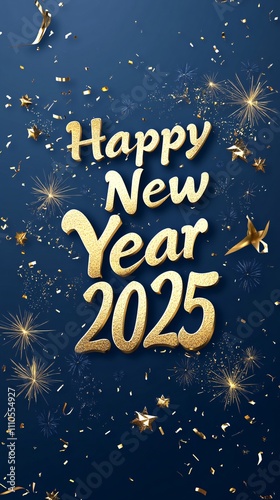 Fototapeta premium luxury text "Happy New Year 2025" blue background, new year background, new...
