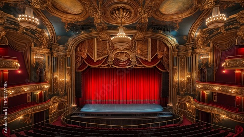 © ThienThu, Obraz premium luxury theater with golden details and charming view