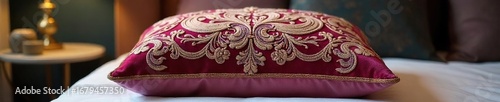 Obraz premium Luxury velvet pillow with intricate embroidery, adding a touch of elegance and sophistication to any bedroom or living space Perfect for interior design inspiration , home, decoration