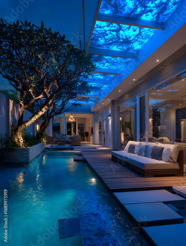 Obraz premium Luxury Villa with Pool at Night
