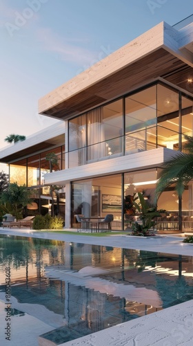 Fototapeta premium Luxury villa with pool, patio, and stunning views